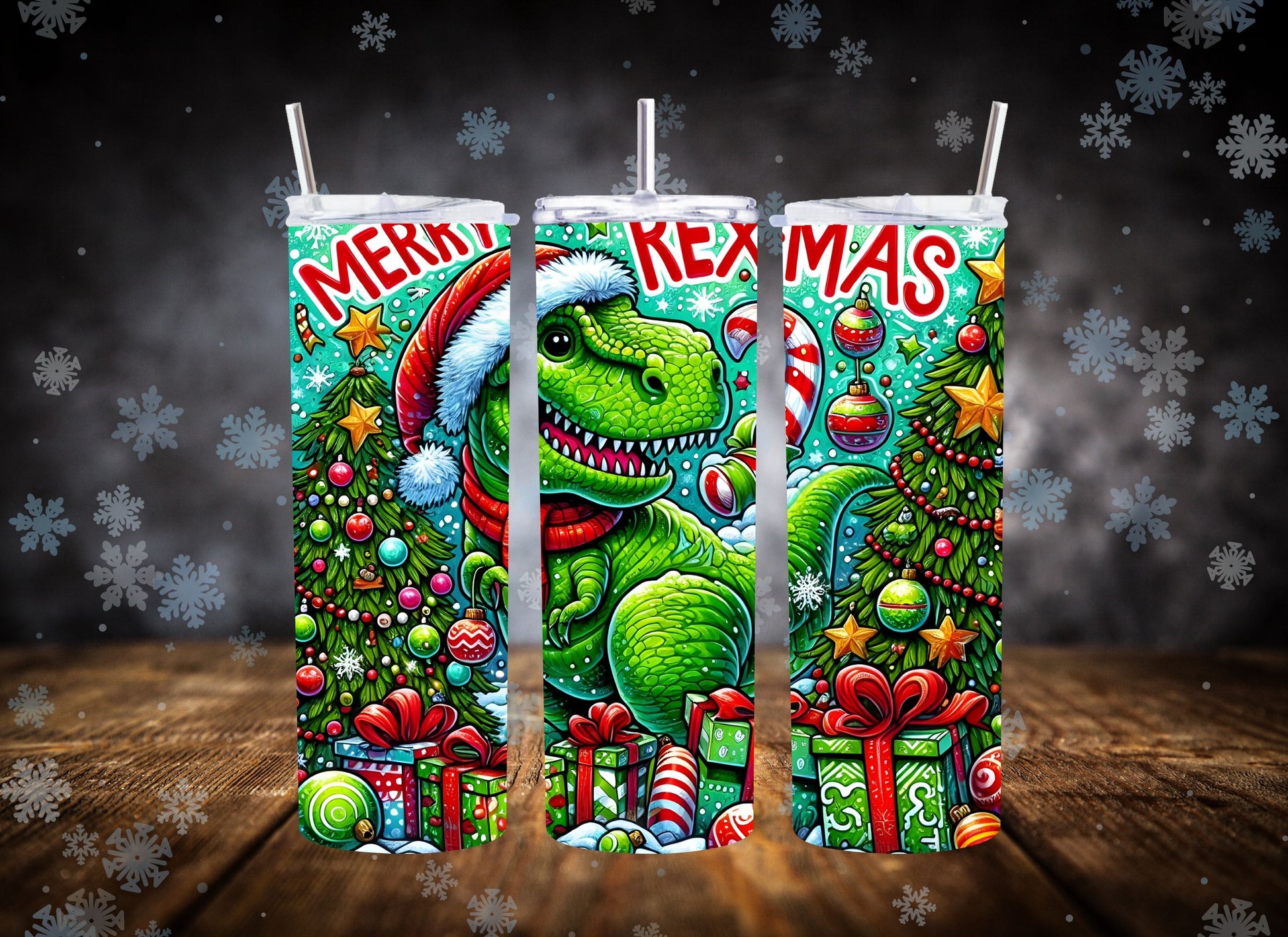 20oz Tumbler Merry Rexmas T-Rex